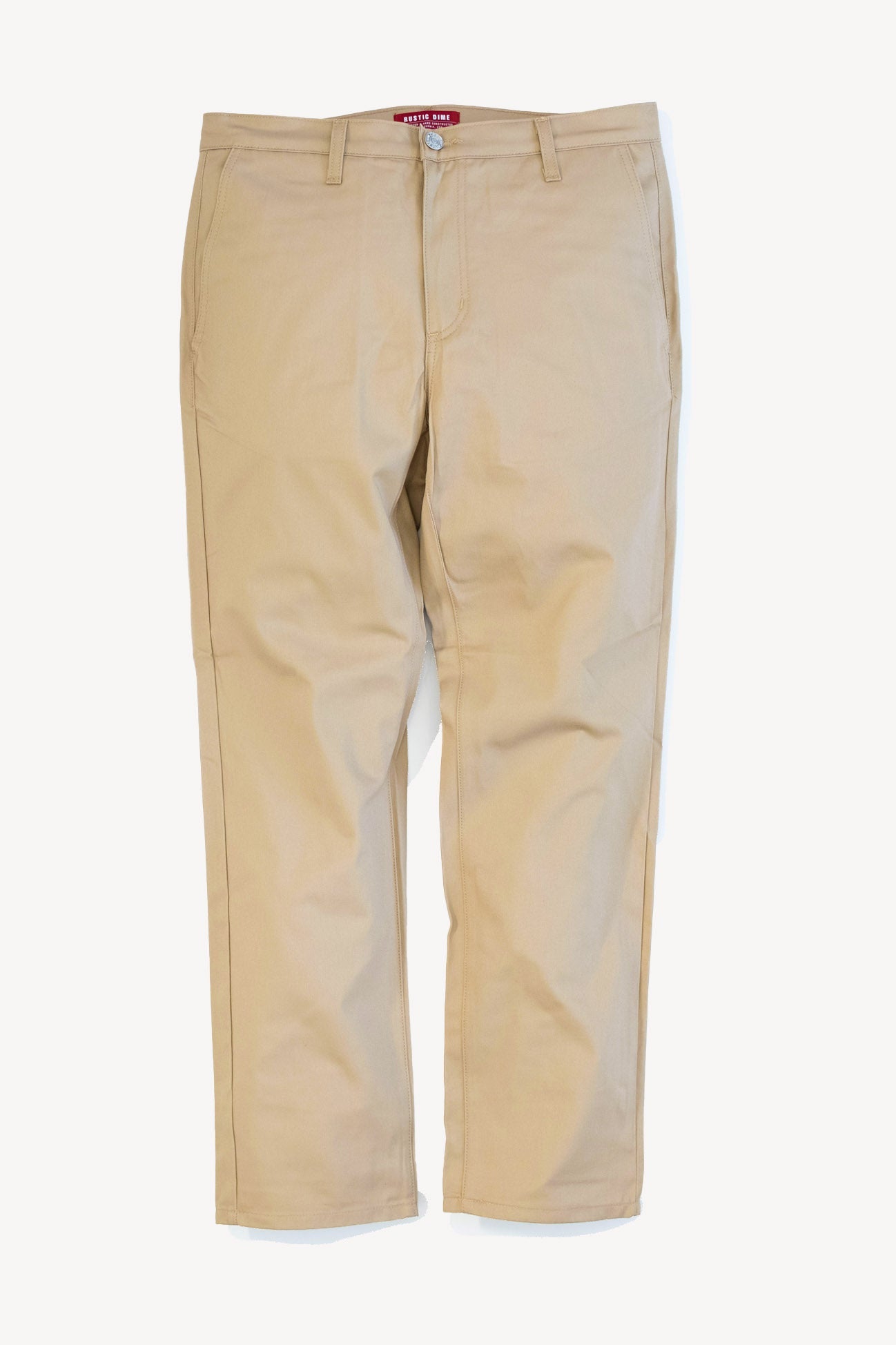 Our new WORKWEAR CHINOS are made from a heavyweight twill that's 100% Heavy Weight Cotton for durability and comfort. These feature CLASSIC RELAXED fit silhouette with chino style pockets; slant pockets on the front, and welt pockets on the back. The best alternative to wearing denim everyday.
