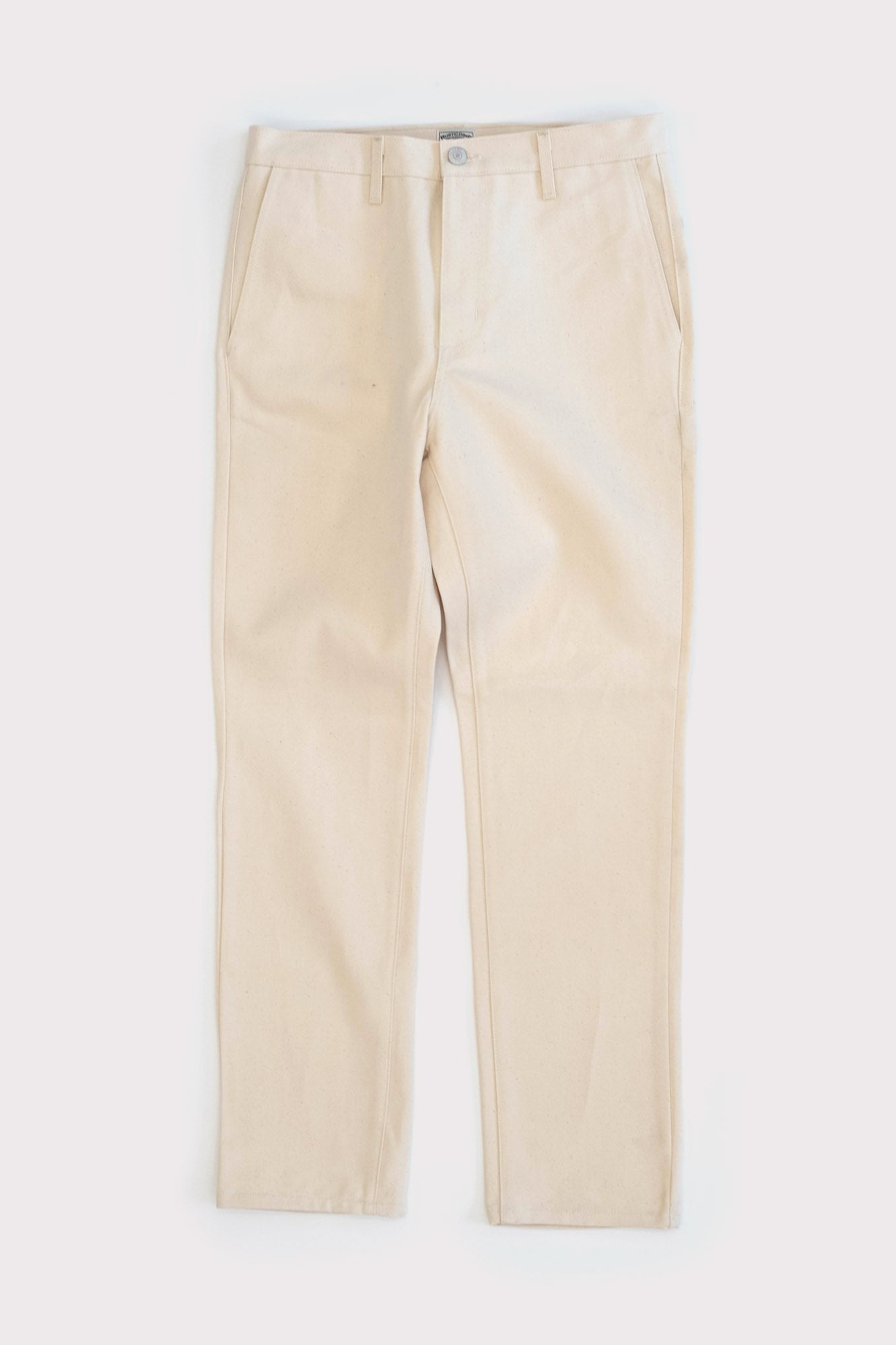 Our new CANVAS WORKWEAR CHINOS are made from 12oz heavyweight duck canvas that's 100% Cotton for durability and comfort. These feature CLASSIC RELAXED fit silhouette with chino style pockets; slant pockets on the front, and welt pockets on the back. The best alternative to wearing denim everyday